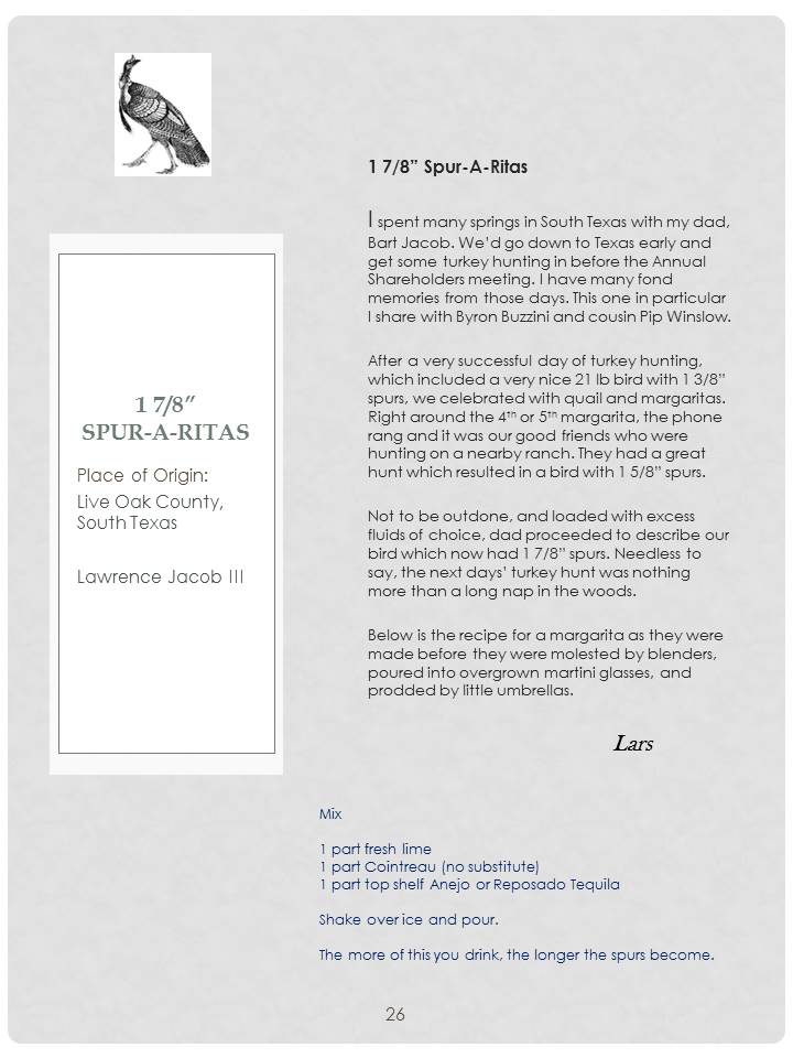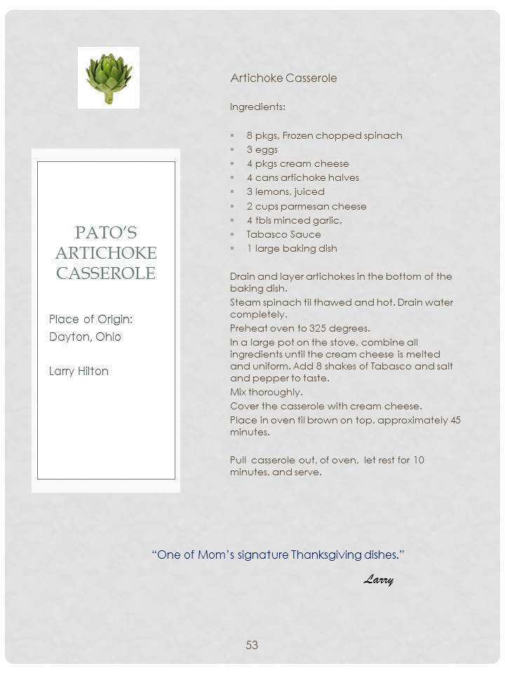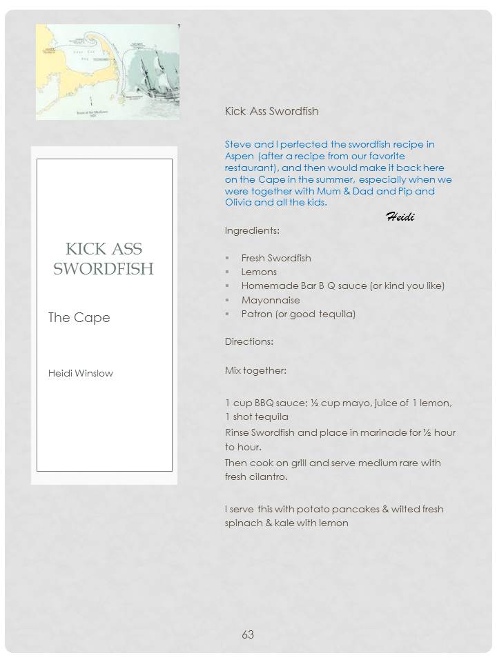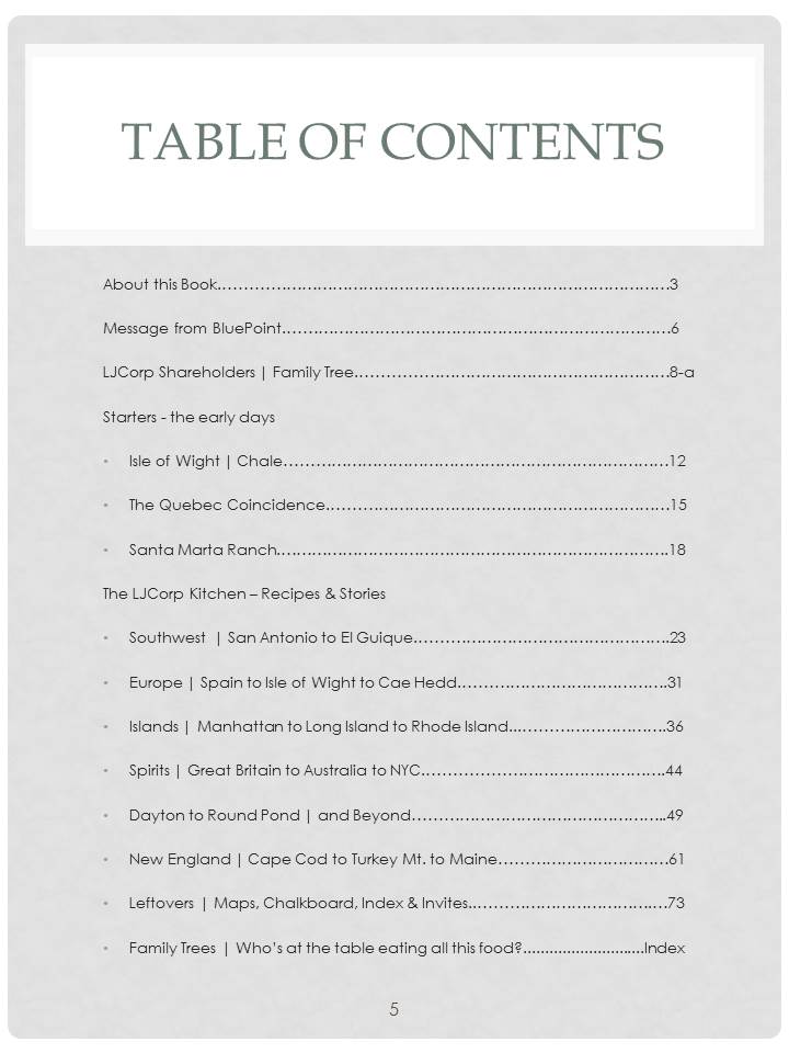 This is more than just a cookbook. It’s many things. It is a compilation of recipes and a series of stories, it’s history, it’s photographs and ancestry and yes, a bit of fictional family lore. The book and its contents are categorized in four general areas; recipes; stories; food & travel; and family trees."